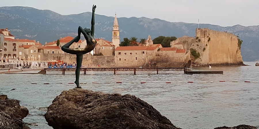 Hablar de costa en Montenegro es hablar de Budva. En otra época puntal amurallado, hoy se la conoce como «la pequeña Dubrovnik» por su ciudadela, cuyas mejores vistas se consiguen bordeando la costa hacia el oeste, hacia la playa de Mogren, hasta la seductora estatua de «la ballerina» (la bailarina), que danza ballet, de puntillas hacia el mar, sobre una roca. Budva es una de las ciudades más antiguas del Mediterráneo; y su ciudadela, una de las mayores fortificaciones de la Edad Media. En el siglo XV, Budva quedó como último enclave de la República de Venecia en la costa adriática y así fue durante tres siglos, antes de comenzar un baile de conquistadores que terminó con su inclusión en la antigua Yugoslavia.
